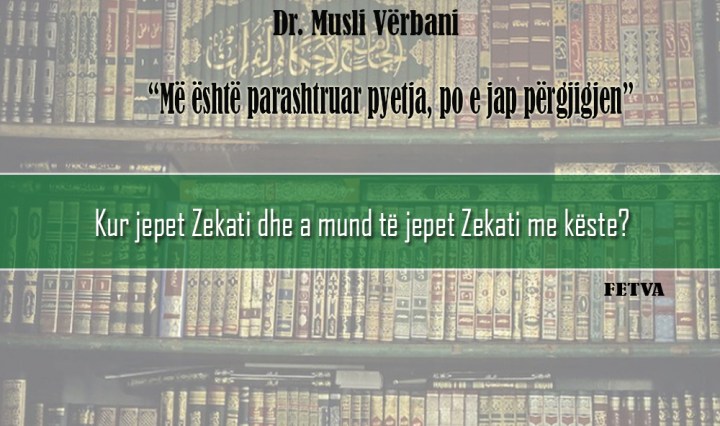 Dr. Musli Vërbani – Përgjigjja: Zekati mund të jepet edhe para kohës së dhënies së Zekatit, ashtu që e jep një apo dy vite para obligueshmërisë së Zekatit, nëse e sheh të arsyeshme se është më e dobishme (ose e … Vazhdoni leximin A mund të jepet Zekati para kohe?