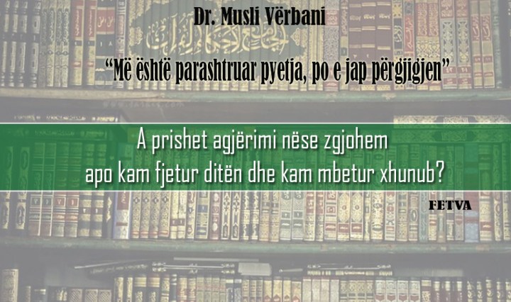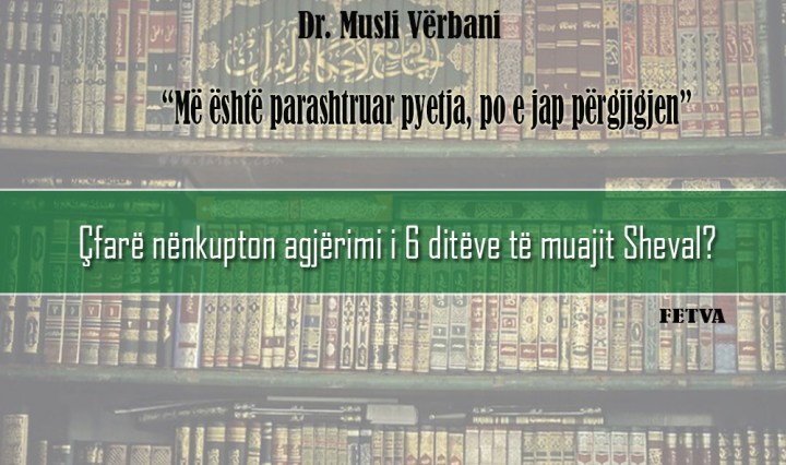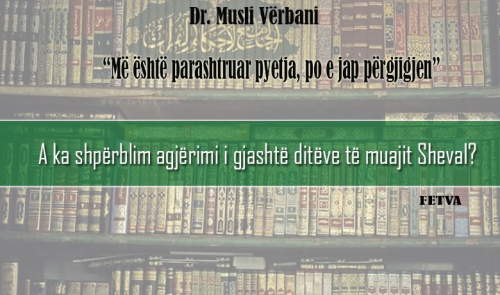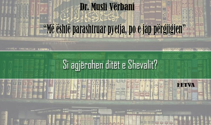 Dr. Musli Vërbani – Përgjigjja: Vetëm dita e parë e Fitër Bajramit nuk lejohet të agjërohet. Përderisa teksti i Hadithit ka ardhur i papërcaktuar, atëherë edhe ditët e agjërimit të muajit Sheval nuk janë të përcaktuara. Pra, nuk janë përcaktuar … Vazhdoni leximin Si agjërohen 6 ditët e muajit Sheval?
