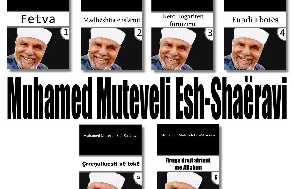 Libra Muhamed Muteveli Esh-Shaëravi – 6 libra Muhamed Muteveli Esh-Shaëravi – 6 libra Përktheu: Dr. Musli Vërbani Fetva. Madhështia e islamit. Këto llogariten furnizime. Fundi i botës. Çrreguluesit në tokë. Rruga drejt Afrimit me Allahun Ndajeni këtë me të tjerët: Ndajeni me të tjerë në X (Hapet në një dritare të re) X Ndajeni me të tjerët në Facebook (Hapet në një dritare të re) Facebook Pëlqejeni Po ngarkohet… Të afërta