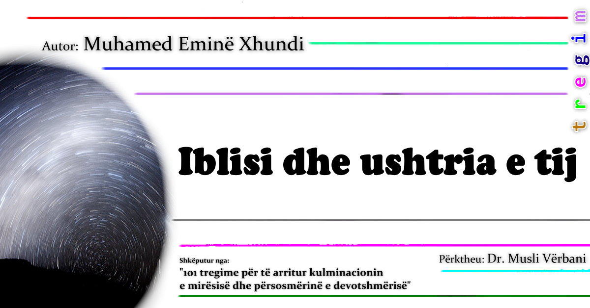 Iblisi në mëngjes e tubon ushtrinë e tij, e shpërndan në fytyrën e tokës dhe u thotë: “Kush e humb një musliman do t’ia vendos këtë kurorë në kokë”. Pasi kthehen, njëri prej shejtanëve i thotë: “Nuk iu kam larguar filanit, derisa e kam ndarë prej gruas së tij”. Ai i thotë: “Ka mundësi të martohet përsëri”. Tjetri i thotë: “Nuk iu kam ndarë filanit, derisa është sjell ashpër ndaj prindërve”. Ai thotë: “Ndoshta kthehet e sillet butësisht me ta”. Tjetri thotë: “Nuk iu kam ndarë filanit, derisa ka bërë prostitucion”. I thotë: “Mirë ke vepruar”. Tjetri i thotë: “Nuk iu kam larguar filanit, derisa ka pirë alkool”. I thotë: “Mirë”. Tjetri i thotë: “Nuk iu kam ndarë filanit, derisa ka vrarë tjetrin”. I thotë: “Ashtu, ashtu; mirë, mirë”.