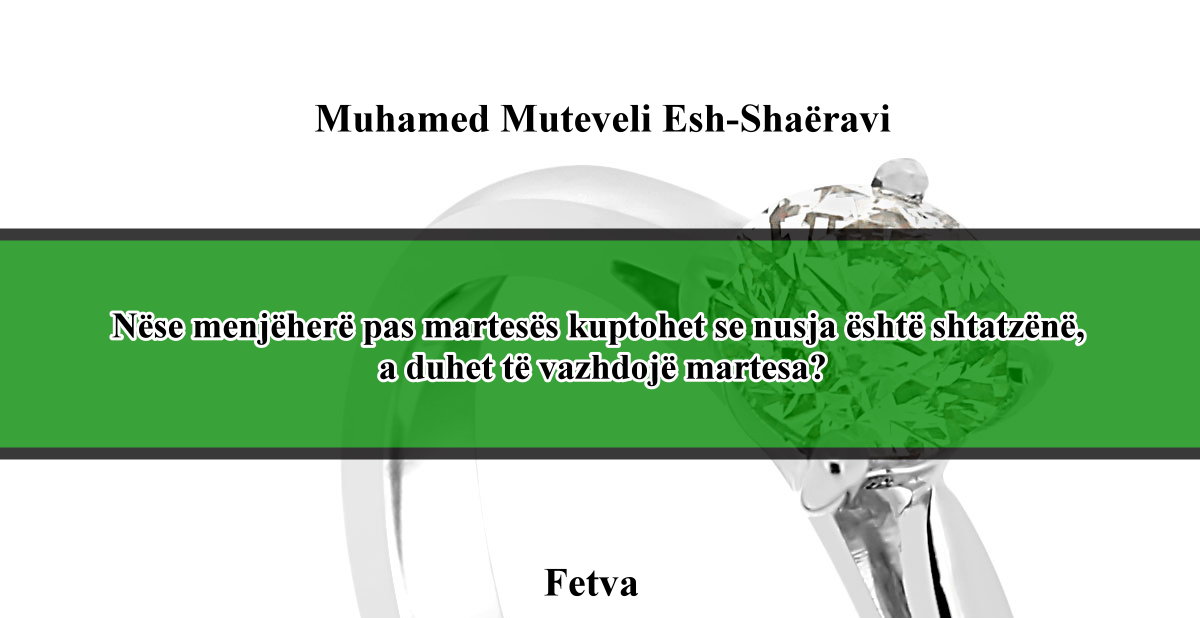 Pasi që po e bën këtë pyetje, përgjigjja është se nuk vazhdon jeta martesore dhe nuk lejohet martesa me grua të tillë, për të mos u mbjellur fara e huaj në arën e tij.