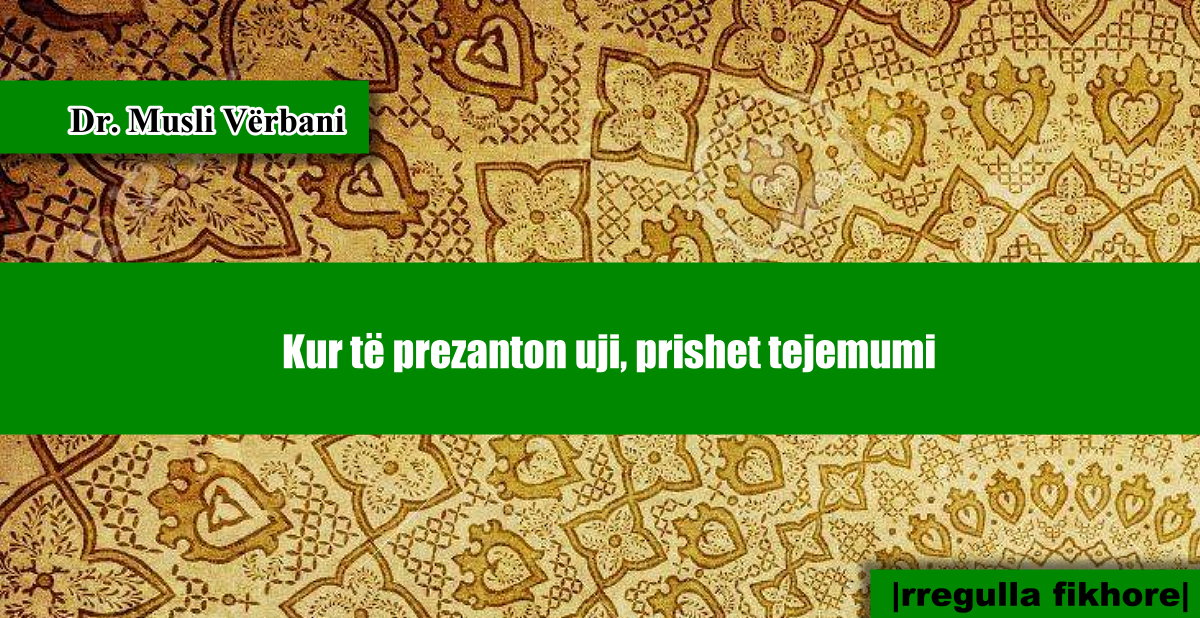 – Nëse një person merr Tejemum dhe është në namaz dhe brenda namazit e kupton se ka ujë në prezencën e tij, ai nuk e ndërprenë për shkak të rëndësisë dhe vlerës së namazit, por e përfundon dhe e përsëritë namazin.
