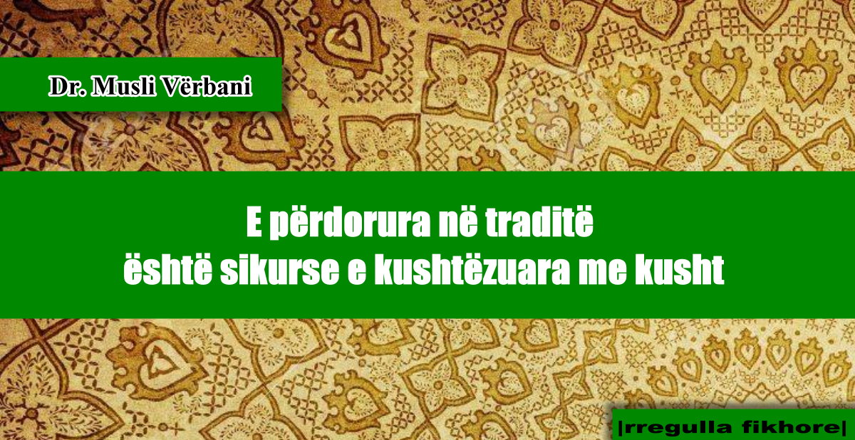 Ajo çka vendoset nëpërmjet rrugës së traditës është sikurse e kushtëzuara me ndonjë kusht dhe përfshinë gjithë njerëzimin. Ai i cili ka mosmarrëveshje me kontraktuesin tjetër për mënyrën e shfrytëzimit të sendeve me qira apo të huazuara, zgjidhja në mes tyre bëhet në bazë si e parasheh qëllimin e shfrytëzimit tradita praktike.