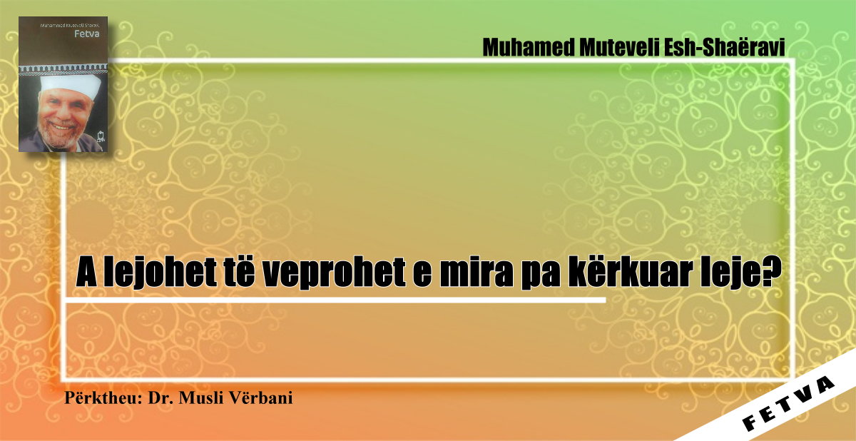 Përgjigje: Shejh Shaëraviju, Zoti e nderoftë thotë: Kur njeriu sheh se është mirë për umetin dhe popullin e tij le ta punojë pa kërkuar leje për atë punë të mirë, për të mos e humbur rastin.