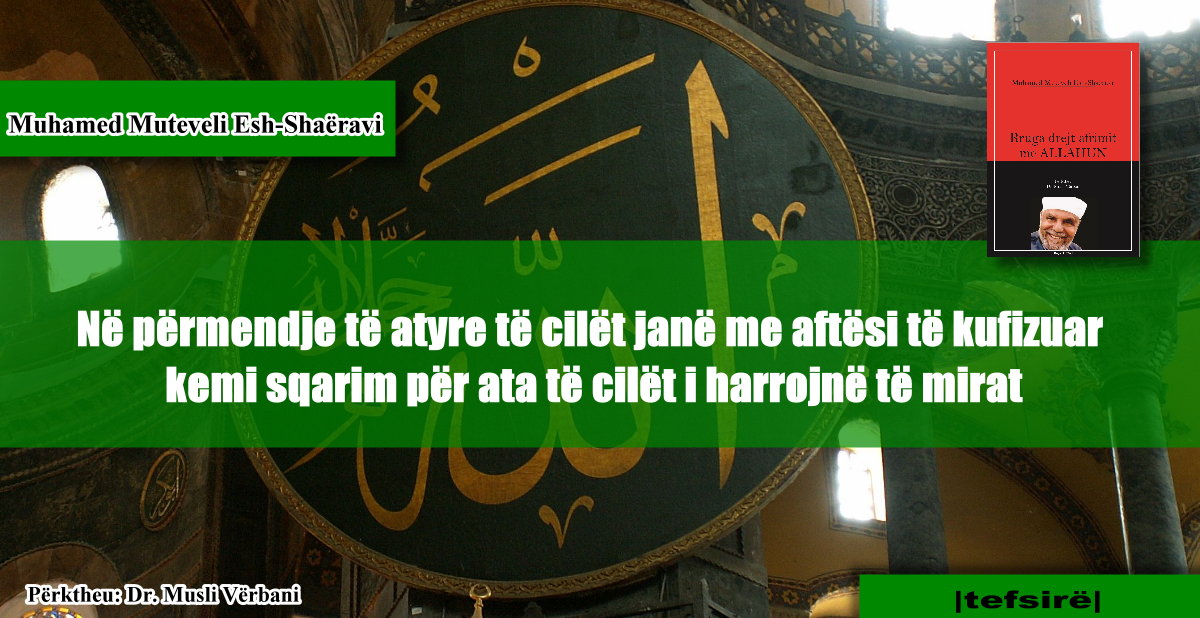 (Përgjigjja) Sepse ti shikon vetëm çështjen sipërfaqësore dhe nuk shikon edhe çështjet të cilat të janë dhënë ty. Mos ashtu! Shikoje edhe atë, shikoje në thellësi, çka posedon ai. Mblidhi begatitë dhe do të shohësh se ai ka disa gjëra më të mira se ti. Secili merr të drejtën e tij nga kandari.