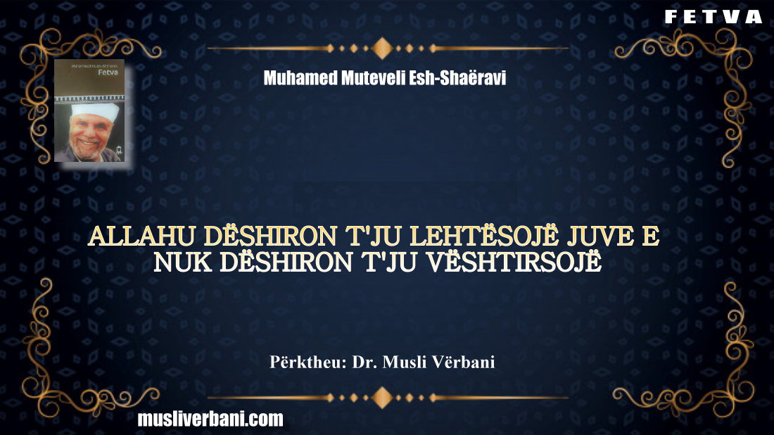 ALLAHU DËSHIRON T’JU LEHTËSOJË JUVE E NUK DËSHIRON T’JU VËSHTIRSOJË