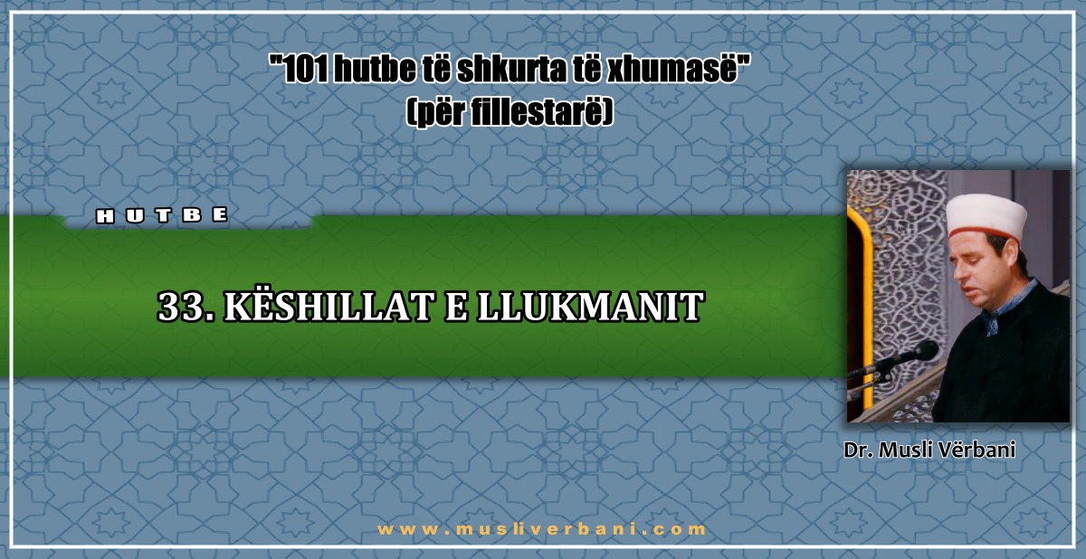 Tema e hutbes së sotme ka të bëjë me Këshillat e Llukmanit kushtuar birit të tij.