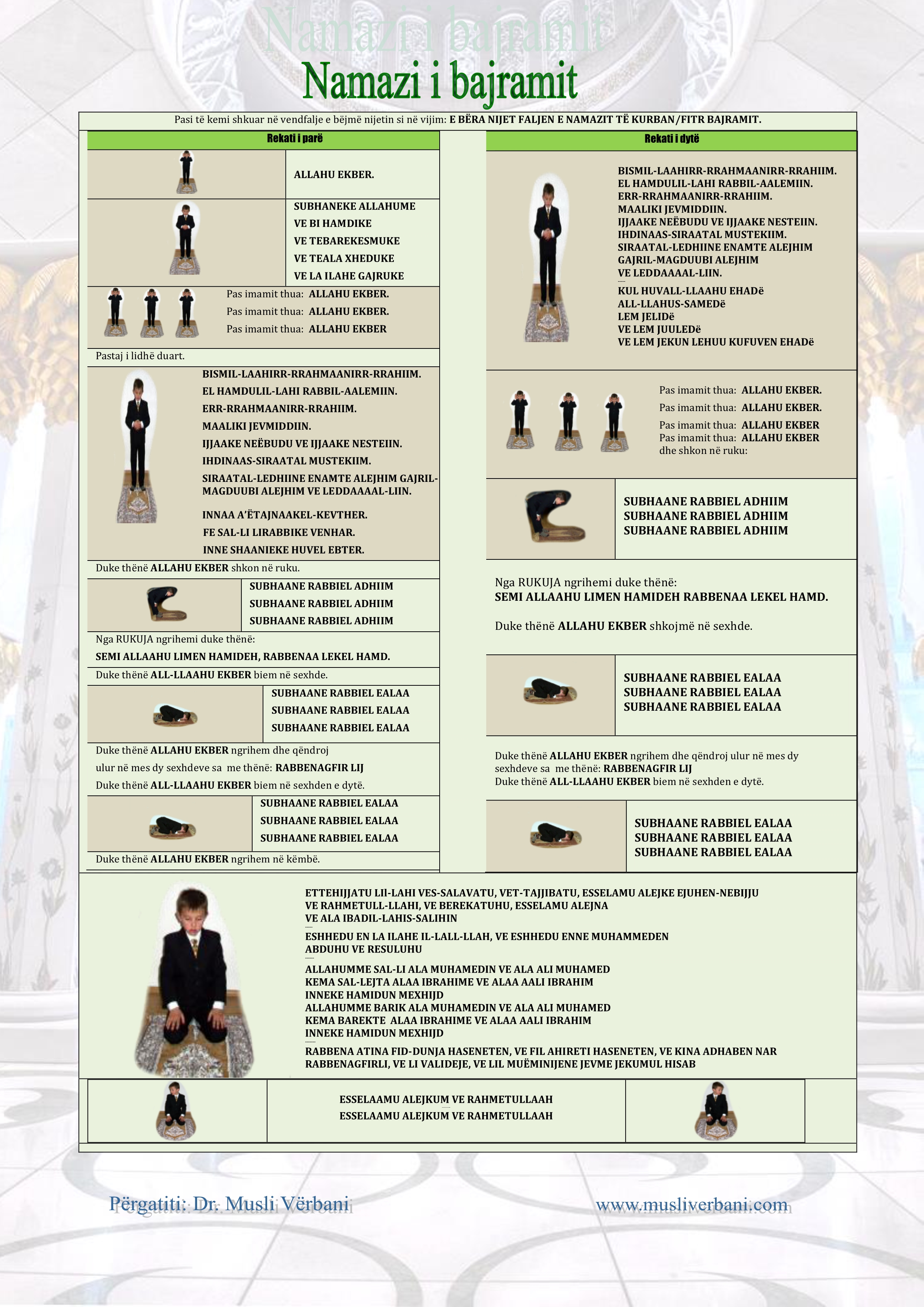 Fikh Falja e namazit të bajramit Dr. Musli Vërbani – Demonstrimi hap pas hapi i faljes së namazit të kurban/fitr bajramit. Versioni pdf Versioni jpeg Ndajeni këtë me të tjerët: Klikoni për ta ndarë me të tjerë në X (Hapet në një dritare të re) X Klikoni që ta ndani me të tjerët në Facebook (Hapet në një dritare të re) Facebook Pëlqejeni Po ngarkohet… Të afërta