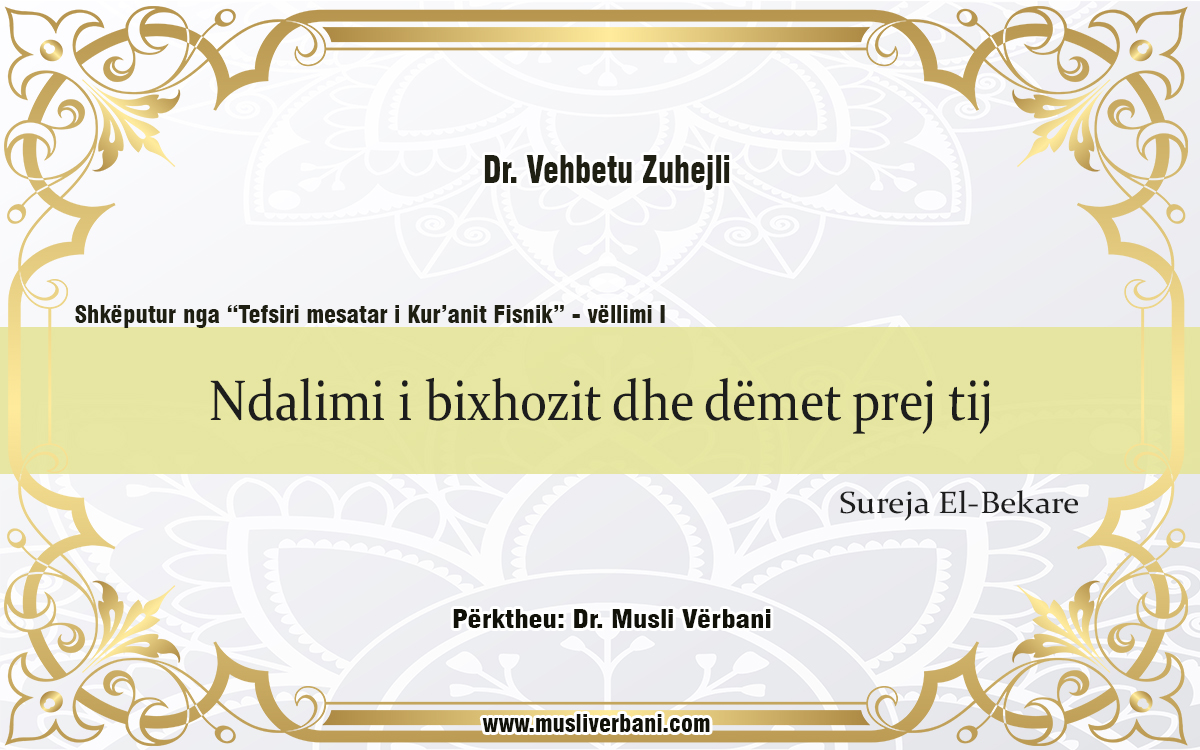 Të pyesin ty për verën dhe bixhozin. Thuaj: “Që të dyja janë mëkat i madh, e ka edhe dobi në to (të pakta) për njerëz, por dëmi i tyre është më i madh se dobia e tyre. Të pyesin ty edhe se ç’do të japin. Thuaj: “Tepricën!” Kështu ua sqaron Allahu juve argumentet ashtu që të mendoni (çka është mirë e çka është keq). (219)
