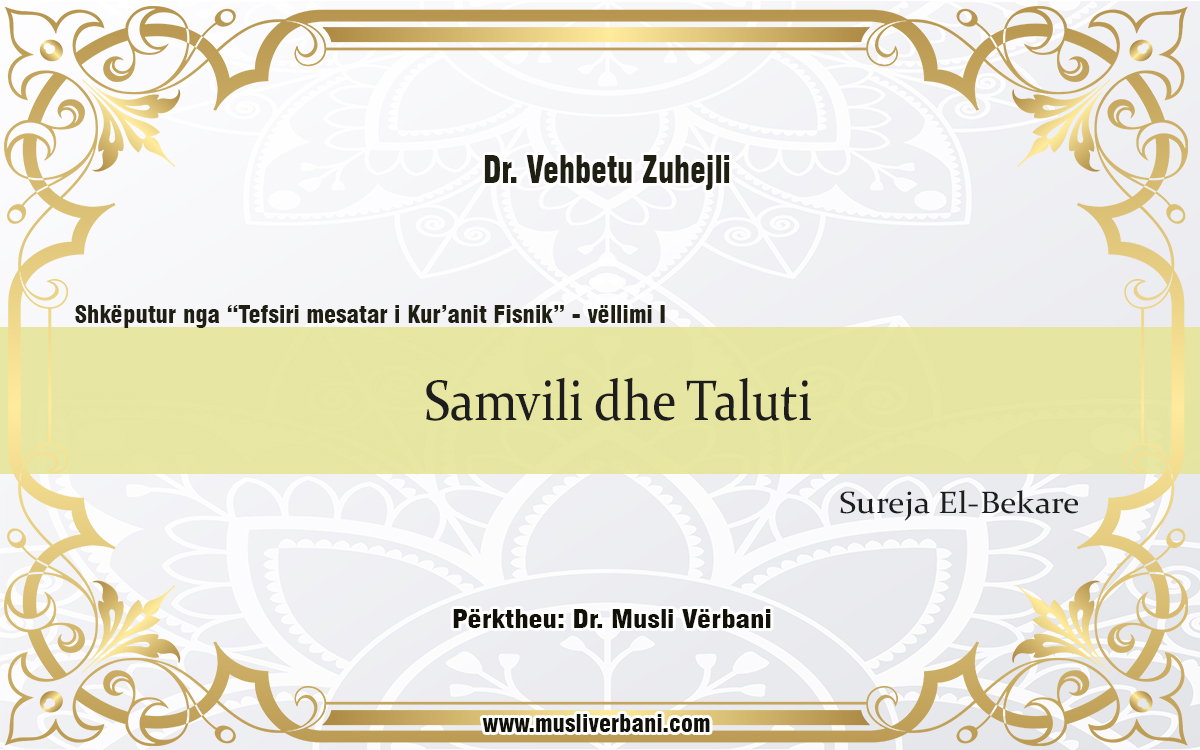 Tani do të tregojmë ngjarjen e pejgamberit Samvil dhe mbretit Talut, në fund do të flasim për bijtë e Israilit e cila tregohet në suretul Bekare, ku sqarohet se lufta ka qenë e ligjësuar te popujt e mëhershëm dhe mbrojtja e të drejtave është obligim ligjor. Do të sqarohet se si komandanti i ushtrisë e teston sinqeritetin e ushtarëve dhe dëshirën për të sakrifikuar. Do të sqarohet se mbretëria dhe pozita janë në duar të Allahut, Ai i jep atij i cili e meriton prej robërve të Tij, siç tregohet në ajetet në vazhdim: