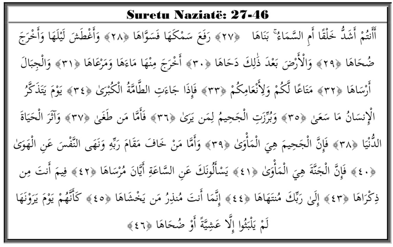 Duke e falënderuar Zotin po e përfundojmë komentimin e pjesës së dytë të sures Naziatë.