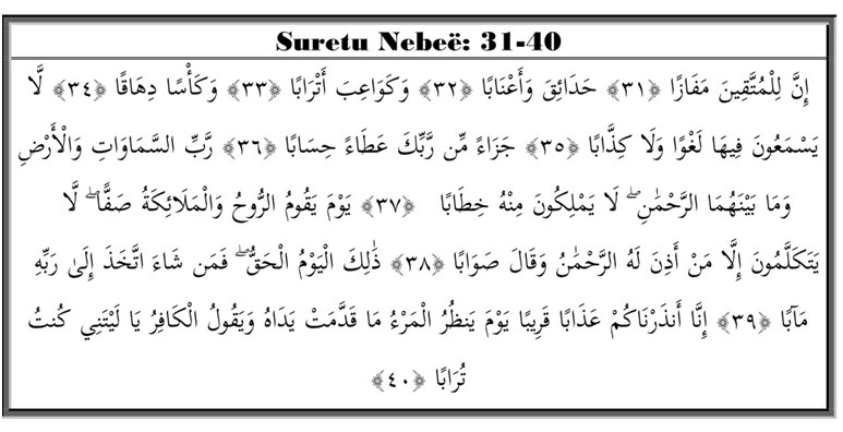 Tani do të shpjegojmë për pjesën e tretë të suretu Nebe,ë e cila është pjesa e fundit e kësaj sureje.