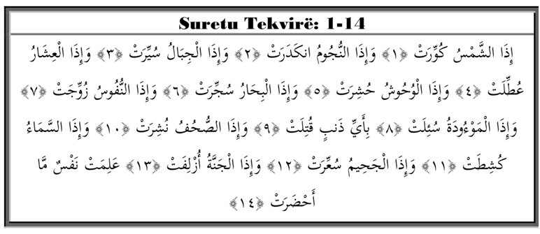 Si çdo sure edhe suretu Tekvirë e ka specifikën e vet, të cilën do ta sqarojmë.