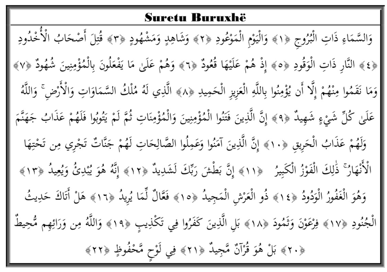 Po fillojmë me ajetin e parë të suretu Buruxhë ku Zoti i Madhërishëm thotë: