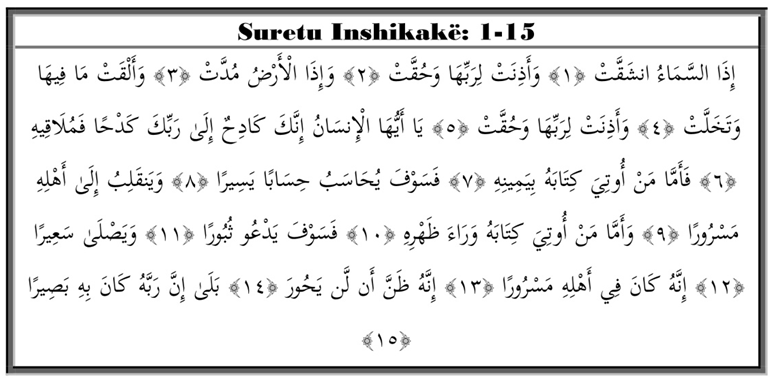 Do të kalojmë disa çaste me suren Inshikakë që të përfitojmë nga kjo sure me vlerë dhe rëndësi të madhe.