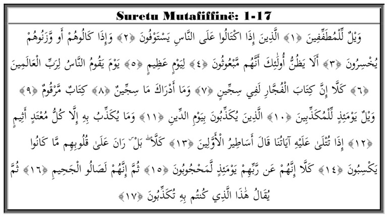 Do të kalojmë disa çaste me suren Mutaffifinë, që të përfitojmë nga kjo sure me vlerë dhe rëndësi të madhe.