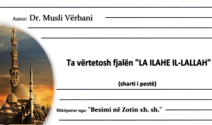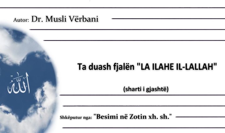 Dr. Musli Vërbani Shkëputur nga “Besimi në Zotin xh.sh.” Ta duash fjalën “LA ILAHE IL-LALLAH” (sharti i gjashtë) Muslimani i vërtetë e do fjalën LA ILAHE IL-LALLAH, ai këtë fjalë e thotë vazhdimisht dhe pandërprerë. Ai vazhdimisht thërret në këtë … Vazhdoni leximin Ta duash fjalën “LA ILAHE IL-LALLAH”