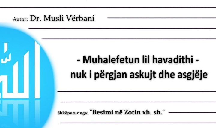 Dr. Musli Vërbani Shkëputur nga “Besimi në Zotin xh.sh.” Sifati meanevije – Cilësitë kuptimore të Allahut Cilësitë kuptimore të Allahut xh.sh. janë: Hajat (JETON) Ilm (DI GJITHÇKA) Semi’ë (DËGJON GJITHÇKA) Besar (SHEH GJITHÇKA) Irade (I VULLNETSHËM) Kudret (I … Vazhdoni leximin Sifati meanevije – Cilësitë kuptimore të Allahut