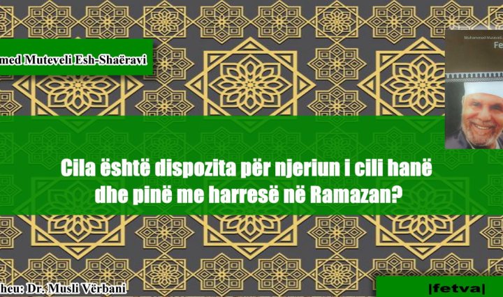 Cila është dispozita për njeriun i cili hanë dhe pinë me harresë në Ramazan? Asgjë, përpos asaj që Muhamedi a.s. ka thënë: E ka ushqyer dhe i ka dhënë ujë me pi Allahu, e ai le të vazhdojë agjërimin. … Vazhdoni leximin Cila është dispozita për njeriun i cili hanë dhe pinë me harresë në Ramazan?