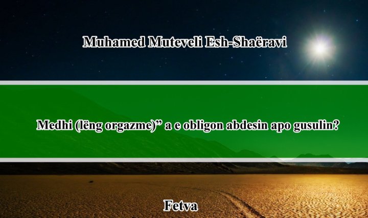 Muhamed Muteveli Esh-Shaëravi Përktheu: Dr. Musli Vërbani Shkëputur nga “Fetva” Nëse femra sheh ëndërr (duke kontaktuar), a merr gusël? Po, nëse veç ka ejakuluar dhe sheh shenja në rroba. Umu Selmete i ka thënë Muhamedit s.a.v.s.: Allahu nuk … Vazhdoni leximin Nëse femra sheh ëndërr (duke kontaktuar), a merr gusël?