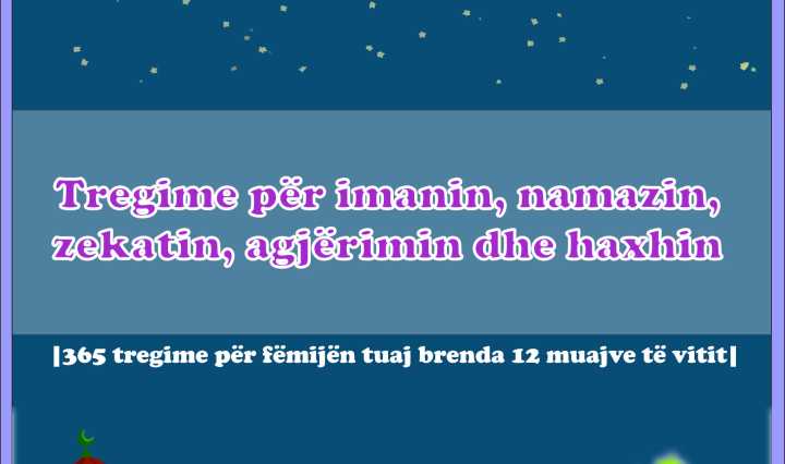 Libër Autor: Dr. Musli Vërbani Titulli: Tregime për imanin, namazin, zekatin, agjërimin dhe haxhin Faqe: 37 Format: A4 Për lexim/shkarkim të librit, kliko në foton e mëposhtme: Vazhdoni leximin Tregime për imanin, namazin, zekatin, agjërimin dhe haxhin