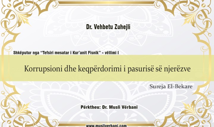 “Tefsiri mesatar i Kur’anit fisnik” – Vëllimi 1 Autor: Dr. Vehbetu Zuhejli Përktheu: Dr. Musli Vërbani – Kushtet materiale (ekonomike) janë pjesë përbërëse e jetës dhe bazë e zhvillimit të shtetit dhe shoqërisë. Me të zhvillohet umeti. Kushtet materiale janë … Vazhdoni leximin Korrupsioni dhe keqpërdorimi i pasurisë së njerëzve