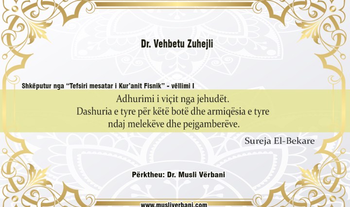 Në zemrat e jehudëve janë: Pabesimi, padrejtësia, materializimi, dashuria ndaj kësaj bote, armiqësia ndaj Xhibrilit, armiqësia ndaj melekëve dhe armiqësia ndaj pejgamberëve. Në përgjithësi ata janë armiq të fesë së Allahut dhe armiq të të gjithë pejgamberëve. Në përgjithësi janë … Vazhdoni leximin Adhurimi i viçit nga jehudët. Dashuria e tyre për këtë botë dhe armiqësia e tyre ndaj melekëve dhe pejgamberëve.