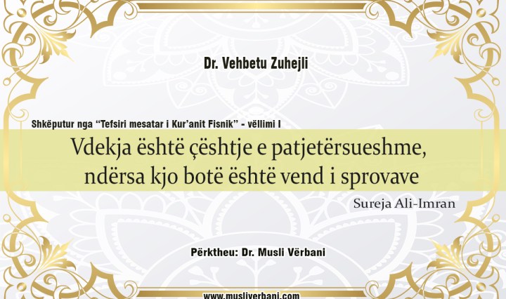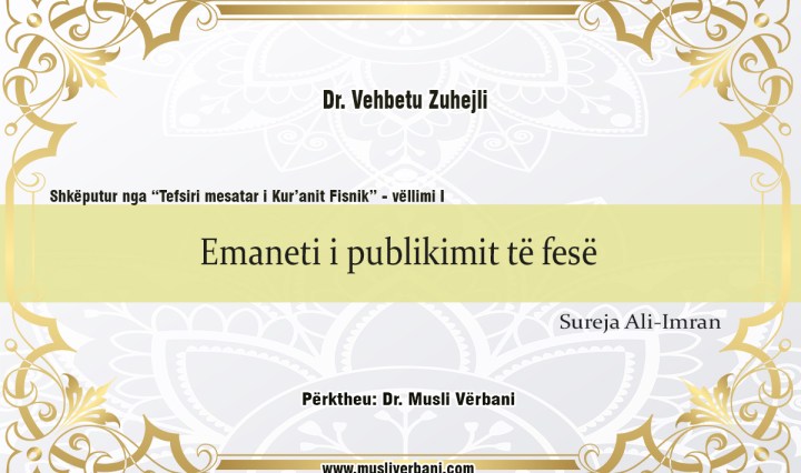 “HISTORI TË SEHABEVE DHE NJERËZVE TË MIRË” Autor: Muhamed Mutevel-li Sharavi. Përktheu: Dr. Musli Vërbani – Ishin në shpellën Hira deri sa pejgamberi migronte për në Medine. Pabesimtarët kishin arritur te hyrja e shpellës. Sipas transmetimit: Gjurmët e këmbëve ishin përfunduar në … Vazhdoni leximin HISTORIA E EBU BEKRIT NË SHPELLË