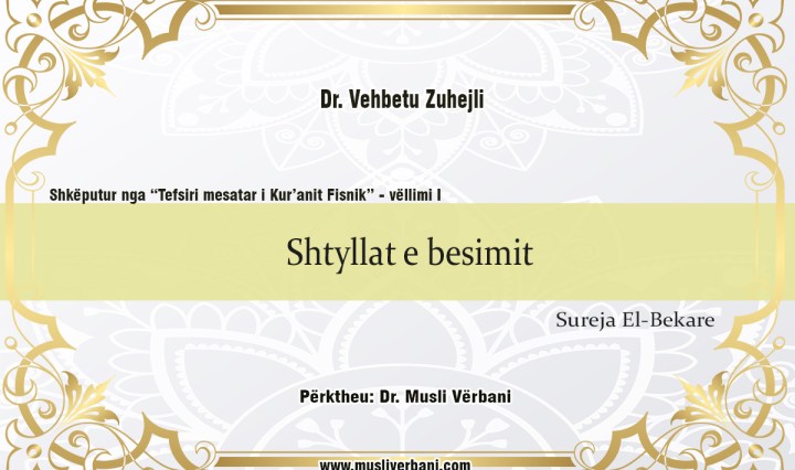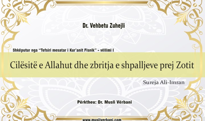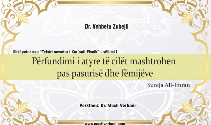 “Tefsiri mesatar i Kur’anit fisnik” – Vëllimi 1 Autor: Dr. Vehbetu Zuhejli Përktheu: Dr. Musli Vërbani – Një pjesë e njerëzve krenohen me pasuri, me fëmijë dhe me pasardhës. Ata mendojnë se në krahasim me të tjerët janë më të … Vazhdoni leximin Përfundimi i atyre të cilët mashtrohen pas pasurisë dhe fëmijëve