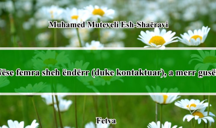 Muhamed Muteveli Esh-Shaëravi Përktheu: Dr. Musli Vërbani Shkëputur nga “Fetva” Nëse femra sheh ëndërr (duke kontaktuar), a merr gusël? Po, nëse veç ka ejakuluar dhe sheh shenja në rroba. Umu Selmete i ka thënë Muhamedit s.a.v.s.: Allahu nuk … Vazhdoni leximin Nëse femra sheh ëndërr (duke kontaktuar), a merr gusël?