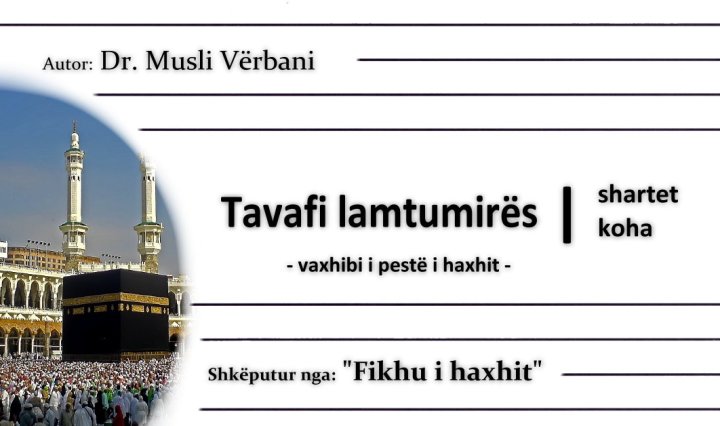 Dr. Musli Vërbani Shkëputur nga “Fikhu i haxhit”   Tavafi lamtumirës (vaxhibi i pestë i haxhit)   Ndryshe Tavafi Lamtumirës është edhe veprimi i fundit i haxhit, dhe ka për qëllim nderimin e Qabës pasi që haxhiu bëhet gati me … Vazhdoni leximin Tavafi lamtumirës