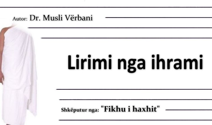 Dr. Musli Vërbani Shkëputur nga “Fikhu i haxhit” Lirimi nga ihrami   Prej momentit kur vishet Ihrami, për haxhiun ndalohen disa gjëra të lejuara, mirëpo kur ta kryejë haxhin i lejohen përsëri gjërat e lejuara mirëpo edhe gjërat e lejuara … Vazhdoni leximin Lirimi nga ihrami