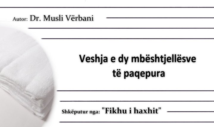 Dr. Musli Vërbani Shkëputur nga “Fikhu i haxhit” Veshja e dy mbështjellësve të paqepura   Pas pastrimit (Guslit) apo Abdestit haxhiu i vesh apo mbulohet me dy mbështjellës. Njërin për pjesën e poshtme të trupit, tjetri në pjesën e epërme … Vazhdoni leximin Veshja e dy mbështjellësve të paqepura