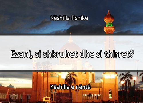 Dr. Musli Vërbani Këshilla fisnike Ezani, si shkruhet dhe si thirret? Këshilla nr. 9 Ezan do të thotë: “Thirrje për namaz” apo “Proklamim për fillimin e namazit”. Si dispozitë, “Ezani” është ligjësuar në vitin e parë … Vazhdoni leximin Ezani, si shkruhet dhe si thirret?