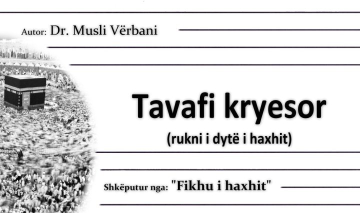 Dr. Musli Vërbani Shkëputur nga “Fikhu i haxhit” Tavafi kryesor (rukni i dytë i haxhit) Kemi katër lloje të tavafeve: Tavafi fillestar apo i përshëndetjes fillestare (për muslimanët e të gjithë botës përpos banorëve të Mekes); Tavafi thelbësor apo … Vazhdoni leximin Tavafi kryesor (rukni i dytë i haxhit)